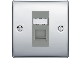 Switched Double Plug Socket (2 Gang) Polished Chrome 13A - Grey Insert