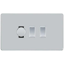 BG Nexus Polished Chrome 3 Gang Switch 1x Trailing Edge LED Dimmer 2x Intermediate Custom Grid Switch