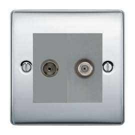 BG Nexus Metal Polished Chrome TV & Satellite Socket NPCTVSATG Male TV connection and a female satellite connection Module clips in to Euro Module front plate Module fits front plate aperture of 50x50mm Screened outle...