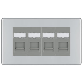BG Screwless Polished Chrome 4 Gang RJ45 CAT6 Data Socket Grey Inserts RJ45 Cat6A Ethernet Outlet Integral Gasket for Moisture Protection Colour Coded Screws Constructed from a Euro Plate and RJ45 Cat6 Modules Polished C...