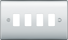 BG Nexus GFPC4 Grid Polished Chrome Screwless 4 Gang Front Plate Secure and easy clip on, clip off front plate design Flat profile with rounded edges No visible plastic around rockers Manufactured to BS 5733 standards ...