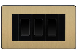 BG Evolve Satin Brass 3 Gang Intermediate Light Switch Custom Grid - Black Insert