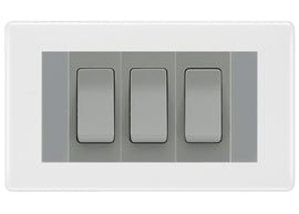 BG White Moulded 3 Gang Intermediate Light Switch Custom Grid - Grey Insert