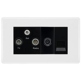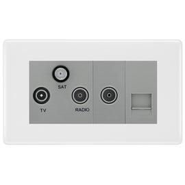 BG White Moulded TV/FM/SAT + Return & 1 Gang Tel - Screened Triplex Socket NWM68G