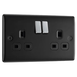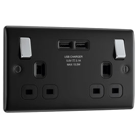 Switched Double Plug Socket (2 Gang) Black Nickel with 2 USB 3.1A Ports - Black Insert