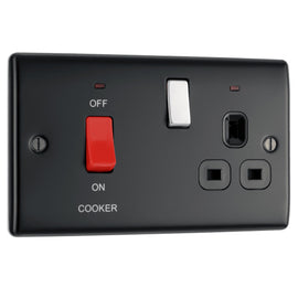 Flat-Plate Black Nickel Double Pole Cooker Switch with Neon 45A