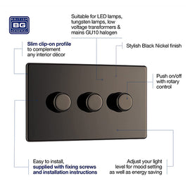 BG NBN84P Nexus Metal 4 Gang, 2 Way, 400W Dimmer Switches - Black Nickel