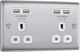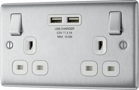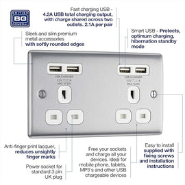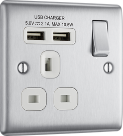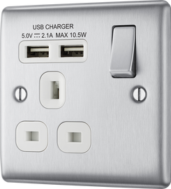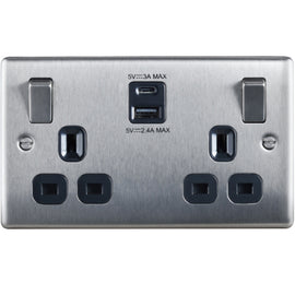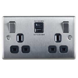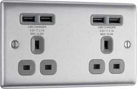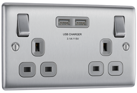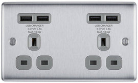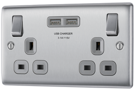 BG Electrical FBS21U2G Nexus Screwless Flat-Plate Single Switched Plug Socket Brushed Steel Grey Insert 2 USB 2.1A