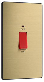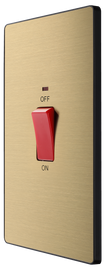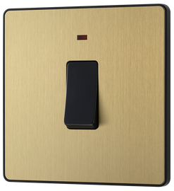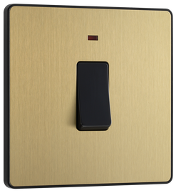 Satin Brass Evolve 45A 2 Pole Large Plate LED Switch - Black Insert