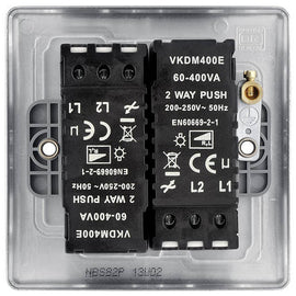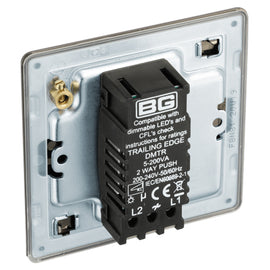 Satin Brass Evolve 2 Gang 200W Intelligent Trailing Edge Dimmer Switch - Black Insert