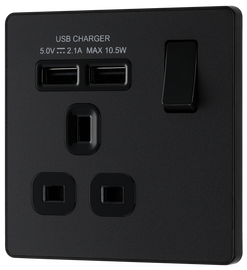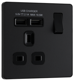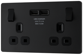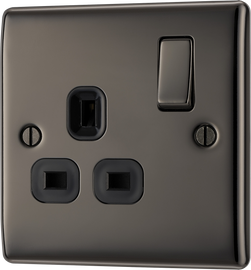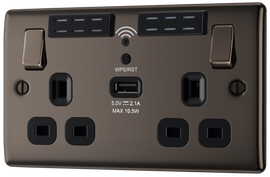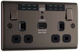 Nexus Metal Black Nickel Single 13A 2x USB-A 2.1A Switched Socket