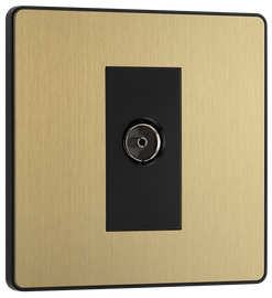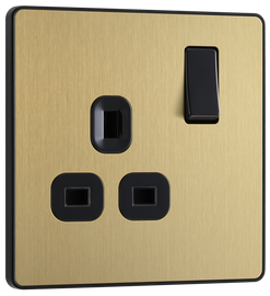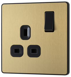 Satin Brass Evolve 1 Gang 13A Switched Socket Outlet - Black Insert