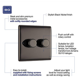 Matt Black Evolve 2 Gang 200W Intelligent Trailing Edge Dimmer Switch - Black Insert