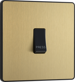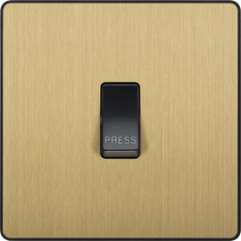 Satin Brass Evolve 10AX 1 Way Press Switch - Black Insert