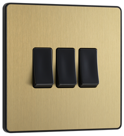 Satin Brass Evolve 3 Gang 20A 16AX 2 Way Light Switch - Black Insert