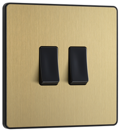 Satin Brass Evolve 2 Gang 20A 16AX 2 Way Light Switch - Black Insert