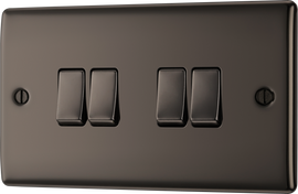 Nexus Metal Black Nickel Quad 10A 10AX 2 Way Plate Switch