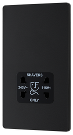 Matt Black Evolve 115-240V Dual Voltage Shaver Socket - Black Insert