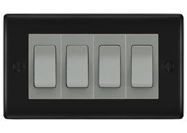 BG Nexus Matt Black 4 Gang 20AX 2-Way Switch Custom Grid - Grey Insert