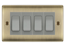 BG Nexus Antique Brass 4 Gang 20AX 2-Way Switch Custom Grid - Grey Insert