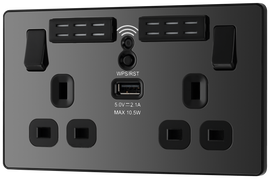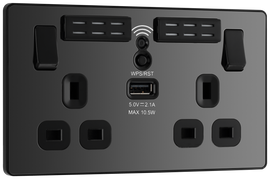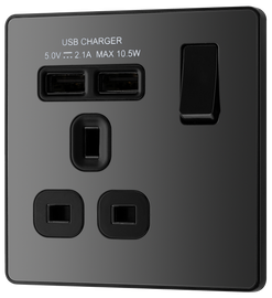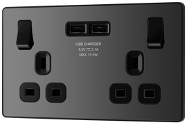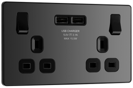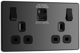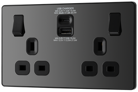 BG NFB22UAC45B Nexus Metal Matt Black 2 Gang 13A 1x USB-QC A 30W 1x USB-PD C 45W Switched Socket