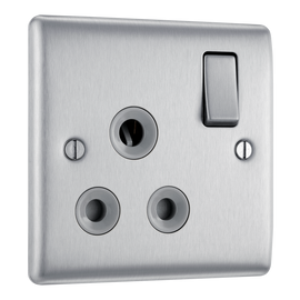 BG Electrical Brushed Steel Single Co-Axial Socket, Rounded Plate