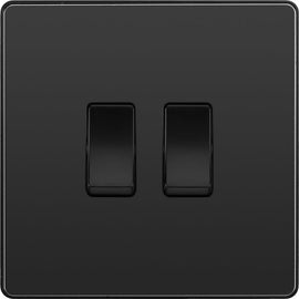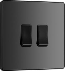 BG NFB42 Nexus Metal Matt Black 2 Gang 20A 16AX 2 Way Plate Switch
