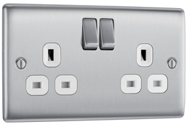 BG NBS70W Nexus Metal Brushed Steel 45A 2 Pole Cooker Switch 13A Neon Switched Socket - White Insert