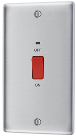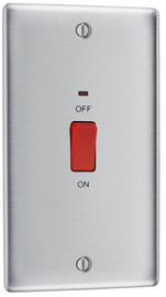 Nexus Metal Brushed Steel Large Plate 45A Double Pole Neon Cooker Switch