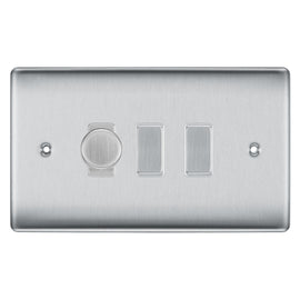 BG Nexus Brushed Steel 3 Gang Light Switch Grid – 1x Trailing-Edge LED Dimmer, 1x Intermediate, 1x 2-Way Switch