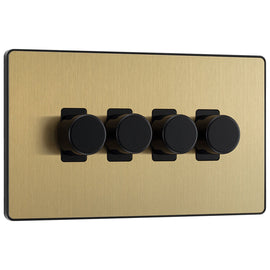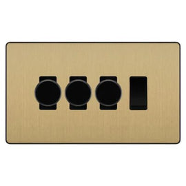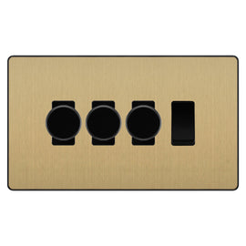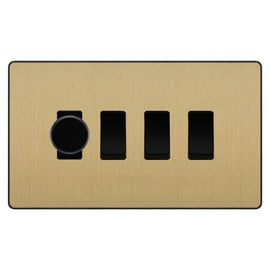 BG Evolve Satin Brass 4 Gang Switch 3x Trailing Edge LED Dimmer 1x Intermediate Custom Grid Switch