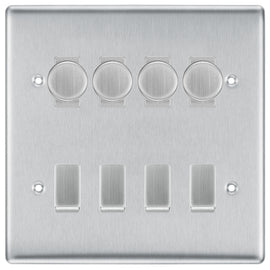 BG Nexus Brushed Steel 8 Gang Switch 4x Trailing Edge LED Dimmer 4x Intermediate Custom Grid Switch