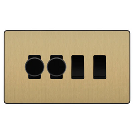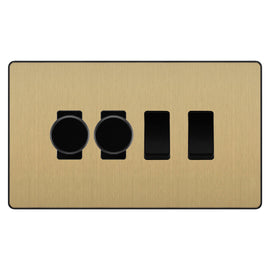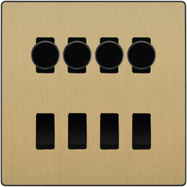 BG Evolve Satin Brass 4 Gang Switch 2x Trailing Edge LED Dimmer 2x Intermediate Custom Grid Switch