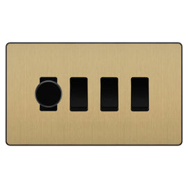 BG Evolve Satin Brass 4 Gang Switch 1x Trailing Edge LED Dimmer 3x Intermediate Custom Grid Switch