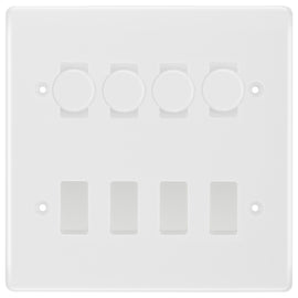 BG Nexus White Moulded 8 Gang Switch 4x Trailing Edge LED Dimmer 4x Intermediate Custom Grid Switch