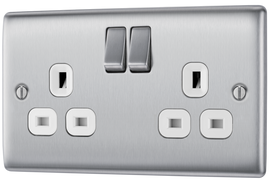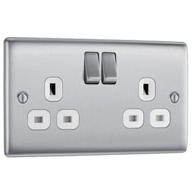 Nexus Metal Brushed Steel Single 13A Switched Socket - White Insert