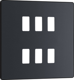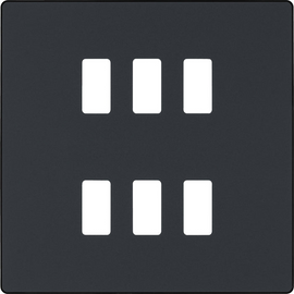 Evolve Grid Matt Grey 6 Module Square Front Plate - Black Trim