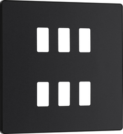 Evolve Grid Matt Black 6 Module Square Front Plate - Black Trim
