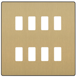 Evolve Grid Satin Brass 8 Module Square Front Plate - Black Trim