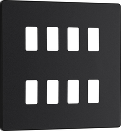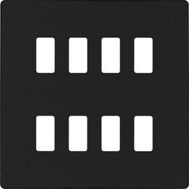 Evolve Grid Matt Black 8 Module Square Front Plate - Black Trim