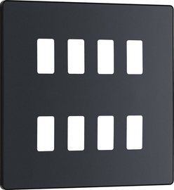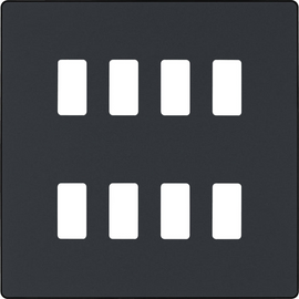Evolve Grid Matt Grey 8 Module Square Front Plate - Black Trim