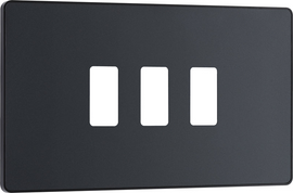 Evolve Grid Matt Grey 3 Module Rectangular Front Plate - Black Trim