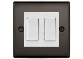 BG Nexus Black Nickel 2-Gang Light Switch 1x 2-Way + 1x Intermediate – White Inserts