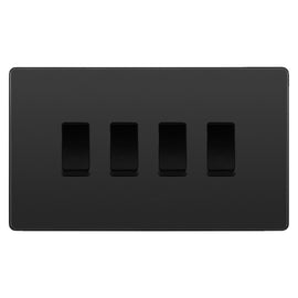 BG Electrical Screwless Matt Black 4-Gang Light Switch 2x 2-Way + 2x Intermediate – White Inserts