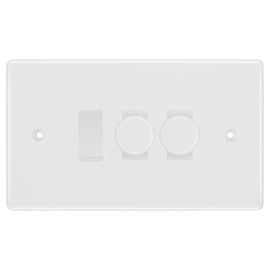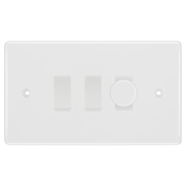 BG White Moulded 3 Gang Light Switch 2x Trailing Edge LED Dimmer 1x 2 Way Custom Switch