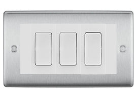 BG Brushed Steel Screwless 3G Switch 1x Intermediate 2x 2 Way Switch - White Insert