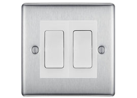 BG Nexus Brushed Steel 3G Switch 2x Intermediate 1X 2 Way Switch - White Insert