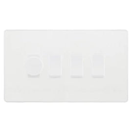 BG Evolve Pearlescent White 4 Gang Switch 1x Trailing Edge LED Dimmer 3x Intermediate Custom Grid Switch