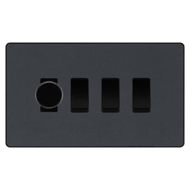 BG Evolve Matt Grey 4 Gang Switch 3x Trailing Edge LED Dimmer 1x Intermediate Custom Grid Switch