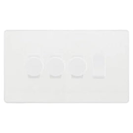 BG Evolve Pearlescent White 4 Gang Switch 3x Trailing Edge LED Dimmer 1x Intermediate Custom Grid Switch